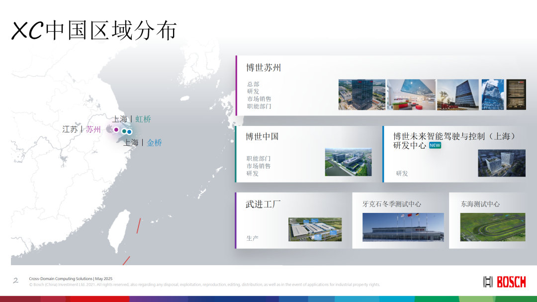 古欣在介绍博世智能驾控事业部中国布局及业务概况时表示,作为全球领先的汽车技术供应商,该事业部在中国市场建立了完整的产业布局,在中国形成了以苏州为总部,以上海为双研发中心,以常州为生产基地,以牙克石和东海为测试基地的战略布局。